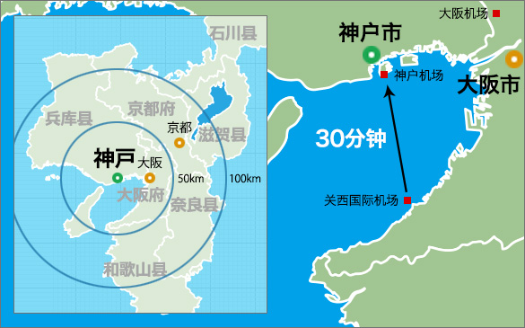 中國(guó)有30余個(gè)城市與關(guān)西國(guó)際機(jī)場(chǎng)實(shí)現(xiàn)了直航。乘坐高速船從關(guān)西國(guó)際機(jī)場(chǎng)到神戶(hù)僅需30分鐘!