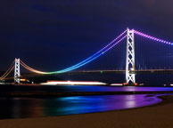 明石海峽大橋連接著日本神戶市與淡路島,全長3911米,主橋墩跨度1991米,兩座主橋墩海拔298.3米,是世界上最長的吊橋。在橋梁距海面47米處設(shè)有展望設(shè)施——舞子海上散步道。漫步在這條散步道上,點(diǎn)綴著海水浴場、游艇停泊港的廣闊而美麗的海岸線以及大阪灣和瀨戶內(nèi)海的壯麗風(fēng)光盡收眼底。